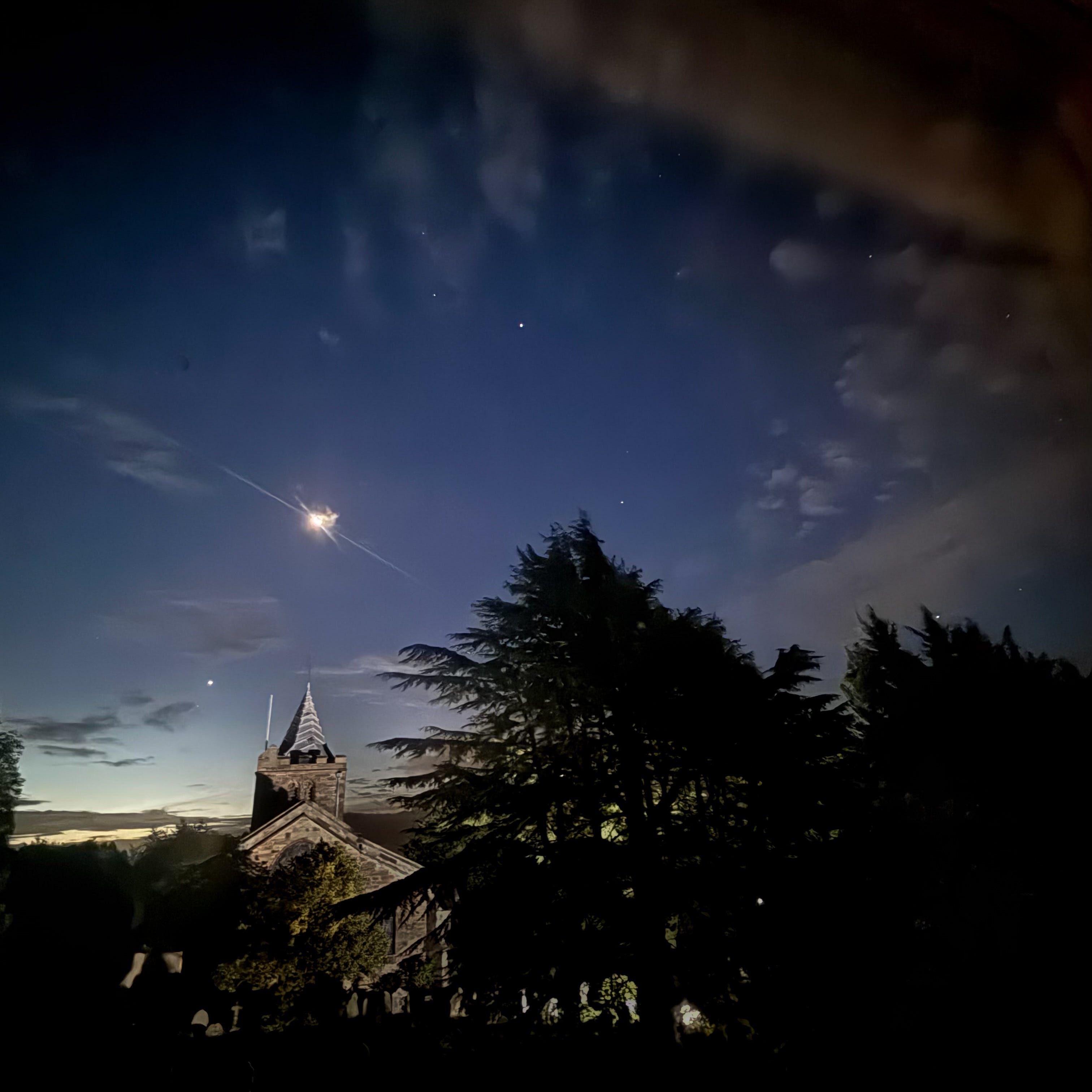 During my stay, the window of my room faced the charming St Deiniol’s Church (and its persistent bells). One morning, I woke up much too early and was greeted by a breathtaking view of the church, with Venus, the Moon and Jupiter in alignment in the early dawn sky.