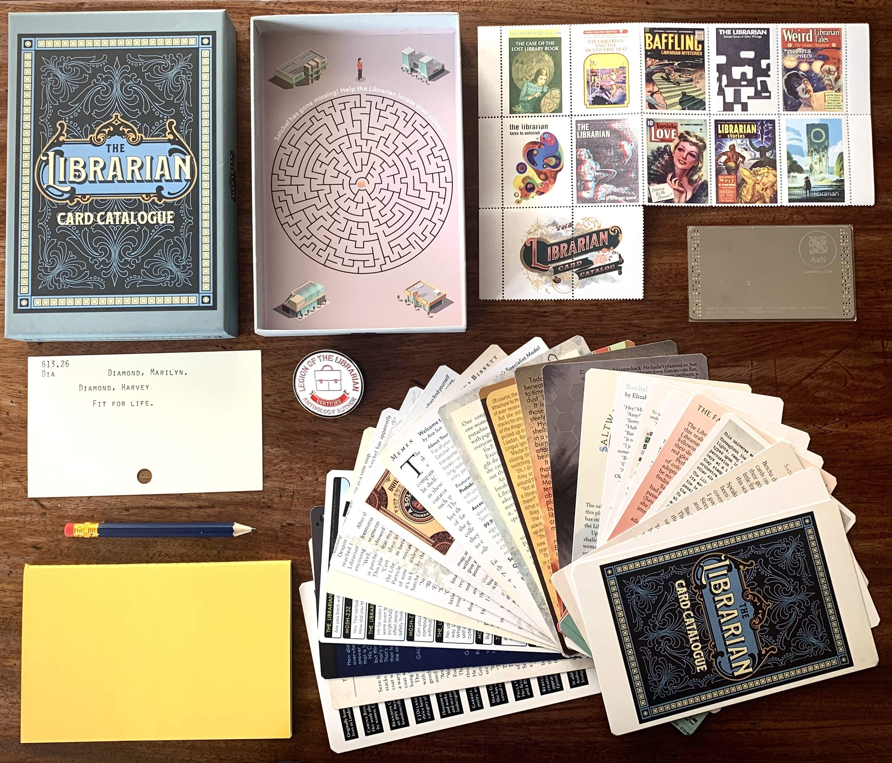 The Librarian Card Catalogue was borne from the idea that you could read stories about the Librarian's adventures through the multiverse in a random fashion: a deck of cards you could shuffle. It has to be the most beautiful publication I've had the fortune to participate in; every card has been uniquely designed to match the story. The bonus stamps and other ephemera are pretty special too.